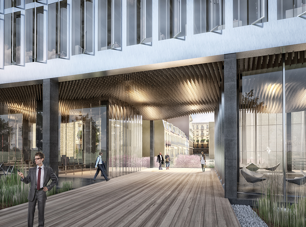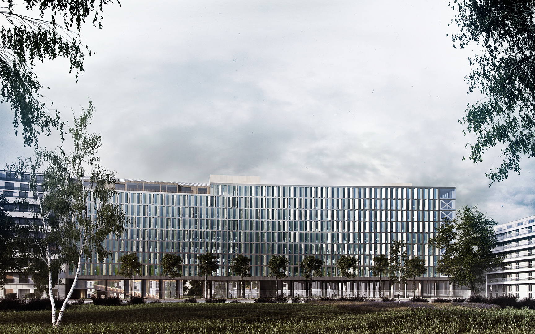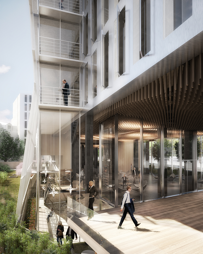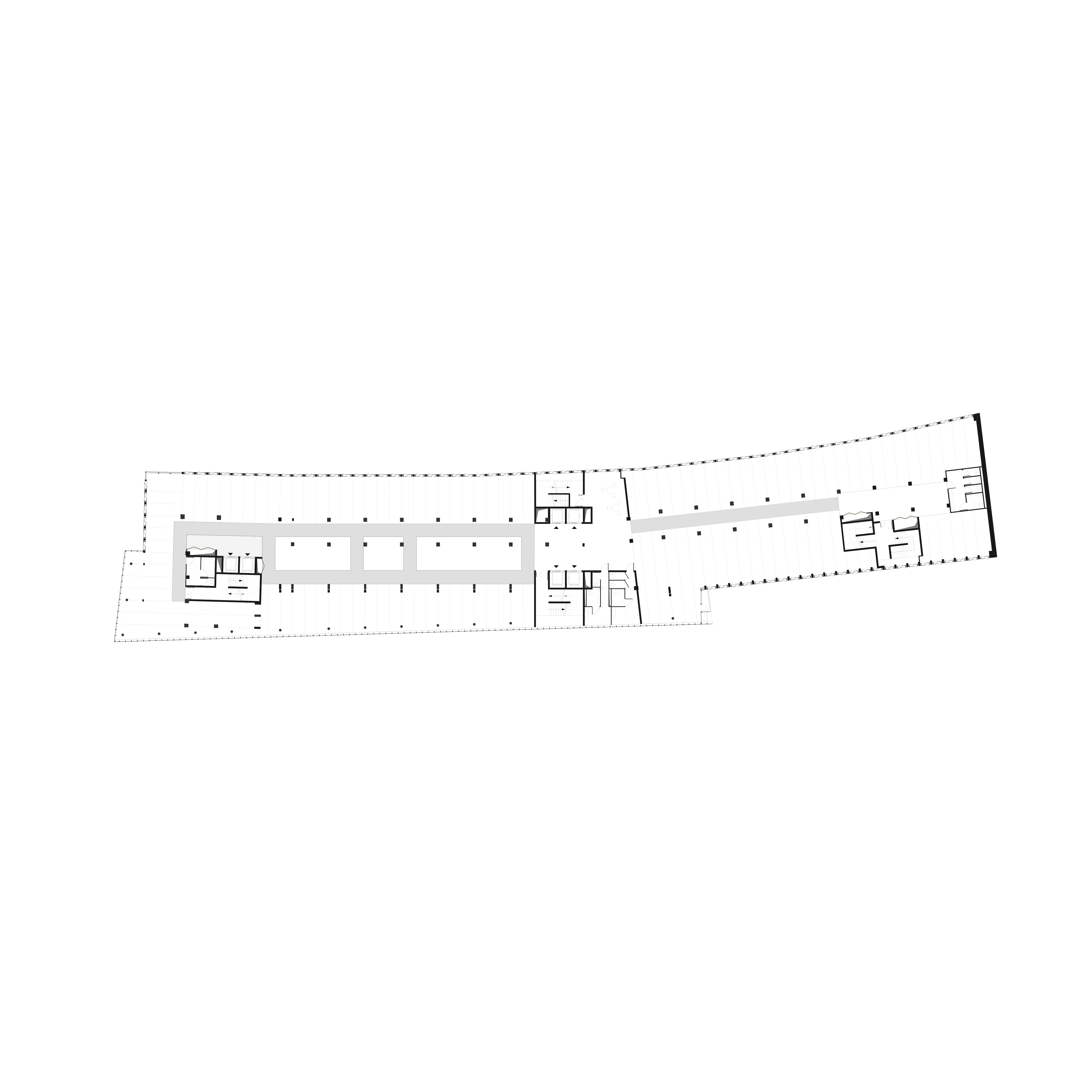 Un bâtiment existant a son histoire propre, s’attaquer à sa transformation c’est tenter de le comprendre en tant qu’organisme. C’est l’occasion de le repenser dans son ensemble comme un organisme ayant subi des altérations mais néanmoins détenteur de nombreux potentiels de mutation. Ici l’infrastructure a de réelles capacités de transformation. La réalisation du bâtiment en deux phases a généré des incohérences dans la distribution des niveaux. Le parking déborde de la superstructure et présente des hauteurs intéressantes. Le sous-sol recèle des richesses spatiales utilisables autrement que pour du stationnement. C’est pourquoi l’extension vient littéralement ouvrir le sol, et se plier pour fabriquer un patio dans son emprise, au niveau du premier sous-sol ainsi rendu à la lumière naturelle et aux usages collectifs.