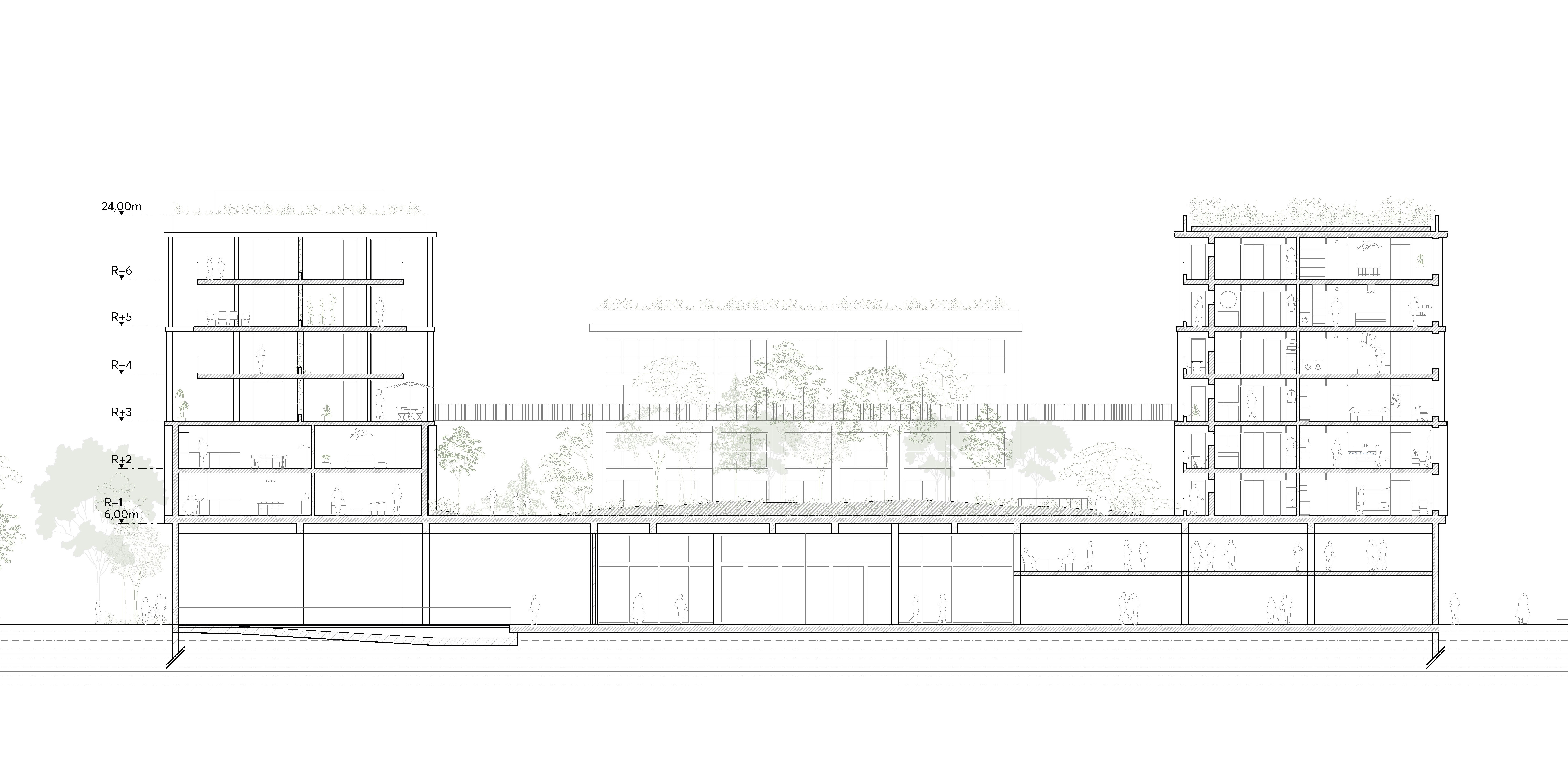 Une urbanité hybride : le projet développe une nouvelle urbanité assurant la cohabitation de l’ensemble des programmes et usages.