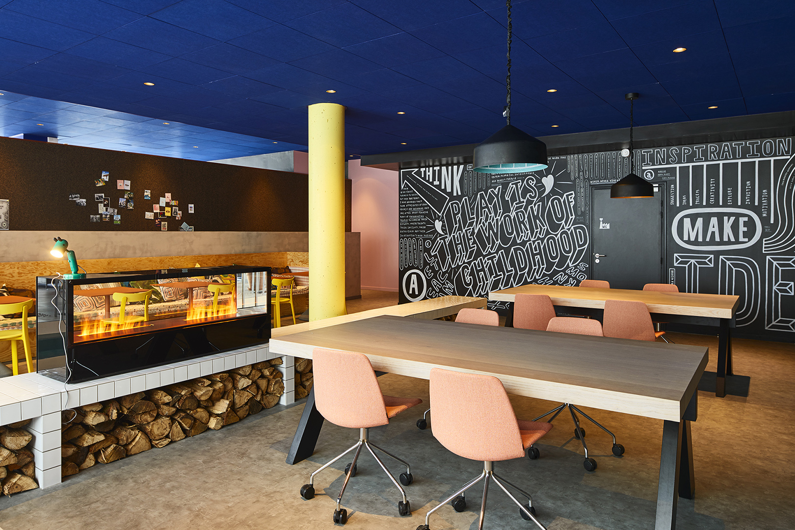 Le projet est situé Hangar G4, au cœur du nouveau quartier des Bassins à Flot à Bordeaux. L’ensemble de l'aménagement représente une surface de 2500m² sur 4 niveaux et a pour destination un espace de Coworking comprenant des open-spaces, des bureaux fermés, des salles de réunions, des espaces de vie communs (espace de vie comprenant 30 postes de travail, des lieux de détente, un coffee shop…). Un travail en étroite collaboration avec le service d'architecture intérieur et design du groupe MamaShelter a permis de proposer des espaces de travail à la fois ergonomiques, conviviaux et adaptés aux nouveaux usages. La modularité et la diversité des espaces proposés permettent de s'isoler, travailler en équipe ou se détendre avec une vue imprenable sur les Bassins à Flot.